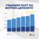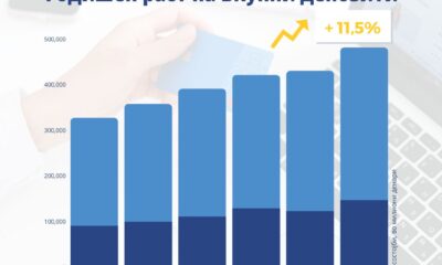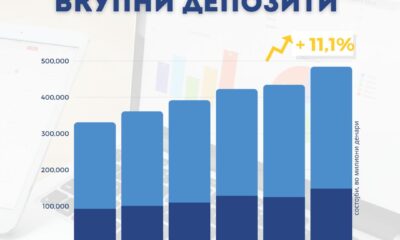 Анализирано на годишно ниво, вкупните депозити се зголемени 11,1 %, што произлегува од зголемувањето на депозитите на двата сектора, со малку поизразен придонес на секторот домаќинства,...