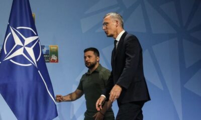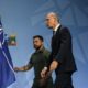 Украинскиот претседател Володимир Зеленски и шефот на НАТО, Јенс Столтенберг, одржаа брифинг со новинарите, на кој генералниот секретар на НАТО објави пакет од три дела за...