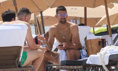 Новак Ѓоковиќ е снимен како ужива на плажа во Мајами во друштво на пријатели, без сопругата Јелена, откако го откажа настапот на турнирот во Мајами опен....
