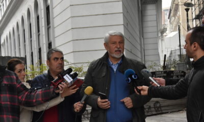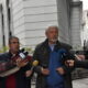 Лидерот на ГРОМ и градоначалник на општина Карпош Стевчо Јакимовски денеска на прес конференција пред зградата на ВМРО-ДПМНЕ во која е сместен партискиот штаб покажа за...