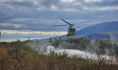 Три „ер трактори“ од Дирекцијата за заштита и спасување од 11 до 14.20 часот во три налети дејствуваа, а со тоа им дадоа воздушна поддршка на...