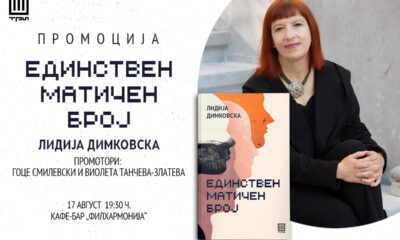Во четврток, во кафе-бар „Филхармонија“, со почеток од 19:30 часот, ќе се одржи промоција на новиот роман од Лидија Димковска, „Единствен матичен број“, во издание на...