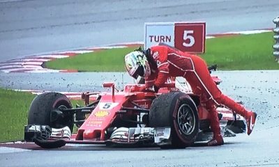 Себастијан Фетел вели дека ги разочарал сите во Ферари кога ја загуби контролата на Азербејџанското ГП во Баку и се удри со тркалата со ривалот за...