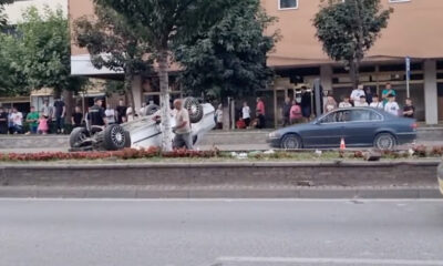 Тешка несреќа се случи денес во центарот на Тетово, автомобил БМВ се преврте на кров среде булевар. Според првите информации има две повредени лица, од кои...