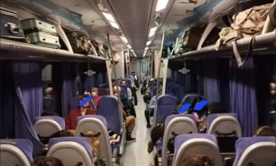 Вагонот е полн, а патниците седат на своите места – фотографијата ја направил млад патник од својот мобилен телефон пред несреќата. Станува збор за третиот вагон...