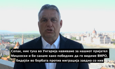 Унгарскиот премиер, Виктор Орбан, преку видео порака упати поддршка за ВМРО-ДПМНЕ и Христијан Мицкоски за претстојните парламентарни избори. „Ве поздравувам од Будимпешта. Познато ни е дека...