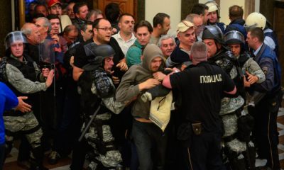 Демонстранти пред кривичниот суд ја нападнаа екипата на „Макфакс“, која известува за протестот. Еден од нив, на чекор од полицискиот кордон, со рака му ја покри...