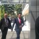 Емилио Бутрагењео и Луј Саха како репрезенти на Реал Мадрид и Манчестер Јунајтед, денеска, во Скопје, во друштво на генералниот секретар на ФФМ, Филип Поповски, и...