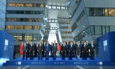 Скаменети лица и непријатна атмосфера, е првата слика од самитот на лидерите на НАТО во Брисел на кој за првпат учествува претседателот на САД, Доналд Трамп....