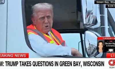 Доналд Трамп, по изјавите на Бајден за поддржувачите и ѓубрето, одржа говор на митинг во Висконсин во рефлективен елек, а на собирот дојде со камион за...
