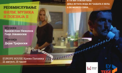 Со музика од Бранислав Николов и Гоце Јованоски и филмска поезија од Дејан Трајкоски, вечерва, од 19 часот, во Europe House во Крива Паланка, ќе се...