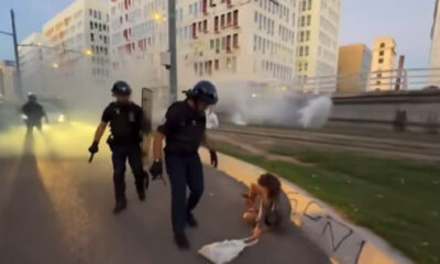 На социјалните мрежи е објавено видео на кое се гледа како полицаец удира учесничка на протестите во Марсеј, Франција, при што таа паѓа на земја. „Ле...