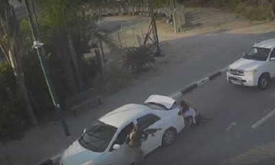 Објавени се снимки од надзорните камери, кои го покажуваат моментот кога две жени бегаат од напад на кибуц во Јачини, Израел, во саботата. На видеото се...