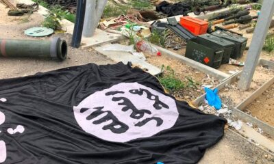 Израелските власти споделија фотографии на кои наводно се прикажани знамињата на ИСИС што ги оставиле милитантите на Хамас. Тие рекоа дека знамињата биле оставени по масакрот...