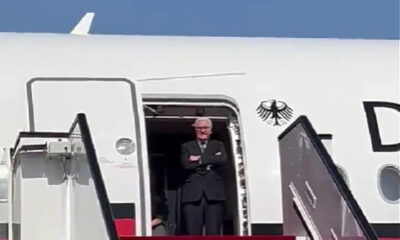 Пристигнувајќи порано од предвиденото во Катар, германскиот претседател Франк Валтер Штајнмаер чекаше на жешкото сонце на вратата на „ербасот А350“ на Бундесверот речиси половина час пред...