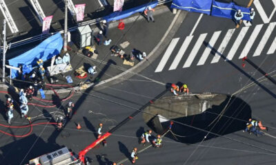 Дупката што проголта камион на раскрсница во близина на Токио продолжи да се шири и се спои со друга што се формираше во близина, а спасувачките...