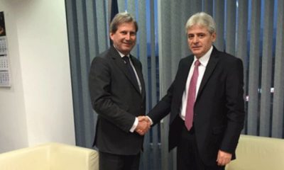 Челникот на водечката партија на Албанците во Македонија ДУИ, Али Ахмети, по средбата со еврокомесарот за проширување и соседска политика Јоханес Хан во Собранието во четвртокот...
