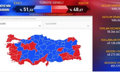 По преброени 95,5 отсто од гласачките ливчиња на референдумот во Турција, 51,62 отсто од граѓаните гласале со „ДА“ за уставните промени во земјата, јавија во неделата...