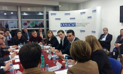 Претседавачот на ОБСЕ и австриски министер за надворешни работи Себастијан Курц, министерот за надворешни работи Никола Попоски и шефицата на Мисијата на ОБСЕ во Скопје,...