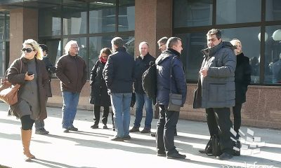 Некои од пратениците од редовите на ВМРО-ДПМНЕ се собрани пред влезот на Основниот суд Скопје 1, каде што во тек е распитот на шетмина нивни сопартијци...