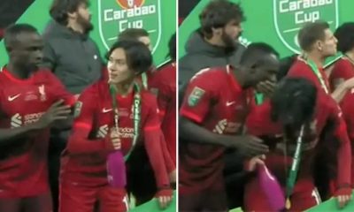 Таки Минамино со почит кон религијата на својот соиграч, престана да прска со шампањското откако Садио Мане го замоли при прославата на титулата од Лига купот...