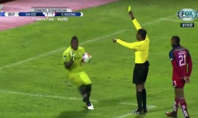 Мечот меѓу еквадорскиот Ел Насионал и Сан Хозе од Боливија во Копа Судамерикана донесе зачудувачки фаул – од судијата до голманот на Ел Насионал, Јохан Падиља....