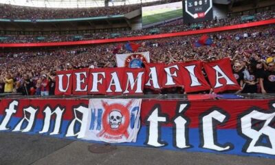 Фудбалскиот клуб Кристал Палас е казнет со 10.000 евра за транспарентот што нивните навивачи го истакнаа против Фредрикштад во плејофот на Конференциската лига. Навивачите на на...