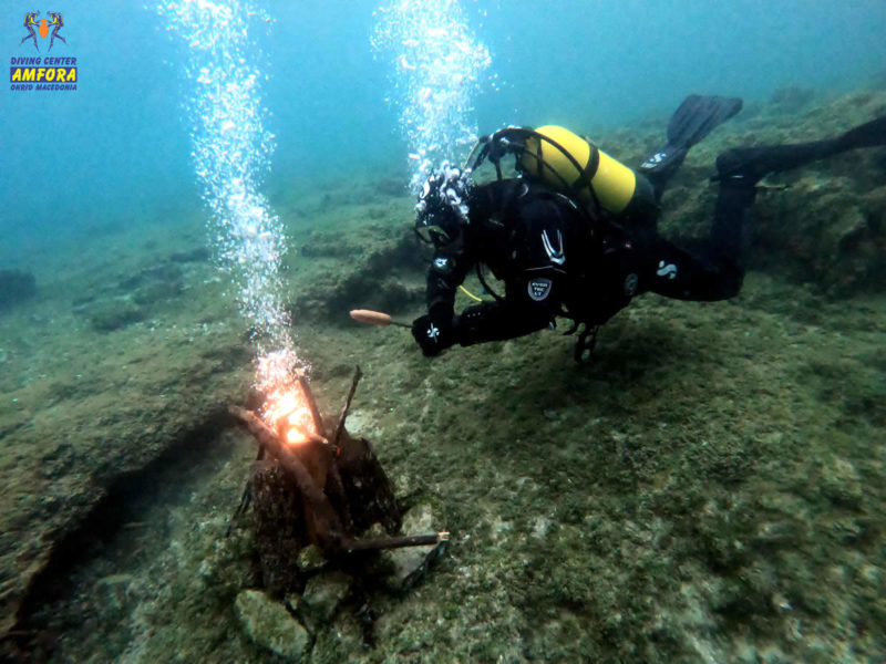 Нуркачите од Нуркачкиот центар „Амфора“ од Охрид на несекојдневен и атрактивен начин ја најавија Стара нова година и под вода го запалија традиционалниот оган, кај Музејот на вода.