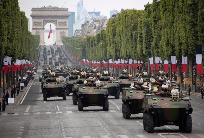 Медиумите пренесоа дека немирите избиле по воената парада, која традиционално се одржува во авенијата Елисејските полиња. Полицијата употребила солзавец за да ја растера толпата.