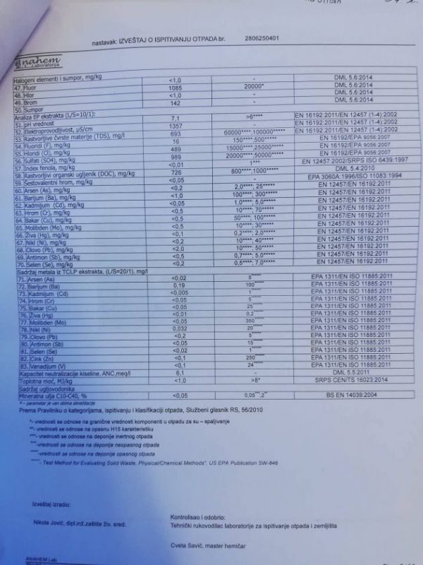 Според известувањата од лабораториите од затекнатата состојба се гледа дека не е констатирана штетност, односно сите емитувања на штетни материи се многу пониски од алармантните референци за опасност.
