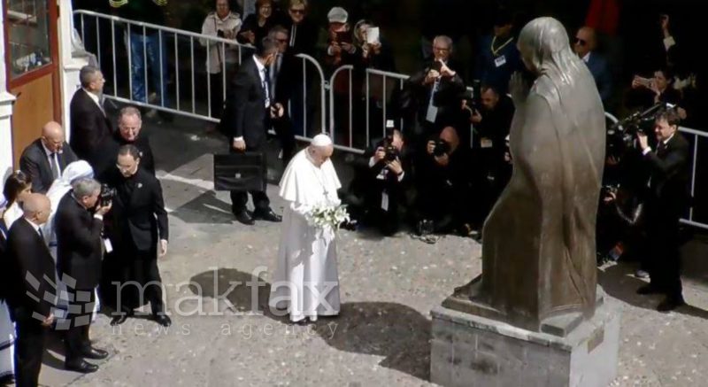 Папата Франциско пристигна во Спомен-куќата на Мајка Тереза, каде што се помоли и положи цвеќе.
