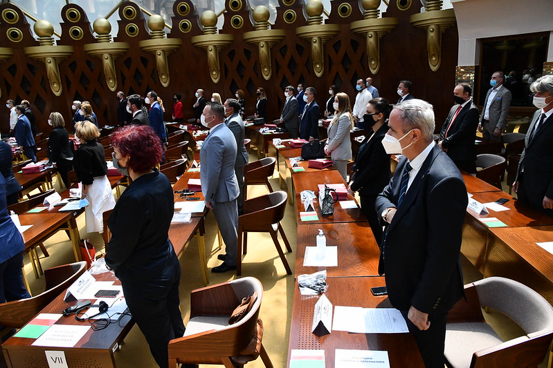 Со интонирање на химната почна првата седница на новиот парламентарен состав, која се одржува во салата Голема купола, со засилени мерки за заштита од коронавирусот. Со седницата претседава досегашниот претседател на Собранието, Талат Џафери.
