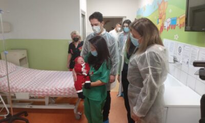 Министерката за труд и социјална политика, Јованка Тренчевска и министерот за здравство Беким Сали, денеска го посетија првото родено бебе во ЈЗУ Универзитетска клиника за гинекологија...
