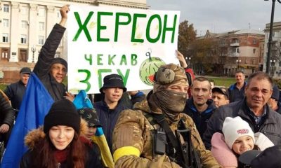 Дописникот на „Скај њуз“ Алекс Роси се наоѓа во центарот на Херсон, каде што Украинците продолжуваат да го слават вчерашното влегување на украинските сили во градот....