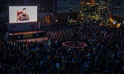 Претседателот на Украина, Володимир Зеленски, вечерва се обрати од апликацијата Зум и испрати порака до демонстрантите ширум Европа, кои вечерва излегоа на улиците за да ја...