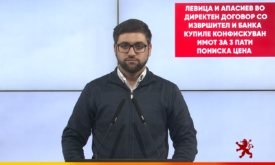 Левица и Апасиев во директен договор со Извршител и банка купиле конфискуван имот за 3 пати пониска цена, кажа денеска на прес-конференција Валентин Манасиевски, член на...