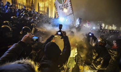 Неколку илјади антивладини демонстранти синоќа се судрија со полицијата пред зградата на парламентот во Будимпешта. Полицијата употреби солзавец за да ги разбие. #Budapest #Hungary pic.twitter.com/aJsQLXWzB4 —...