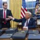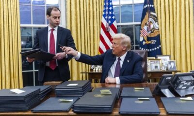Новиот американски претседател Доналд Трамп го потпиша првиот сет извршни наредби на крајот од неговата церемонија на полагање заклетва во арената „Капитал уан“ во Вашингтон пред...