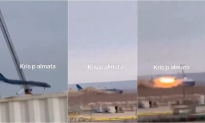 Новата снимка од падот на авионот во Казахстан покажува дека леталото се запалило кога удрило во земјата. Khoảnh khắc máy bay rơi và video từ hiện...