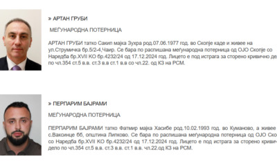 Министерството за внатрешни работи ги распиша меѓународните потерници за поранешниот вицепремиер Артан Груби и за директорот на „Државната лотарија“, Перпарим Бајрами. Претходно, Основното јавно обвинителство издаде...