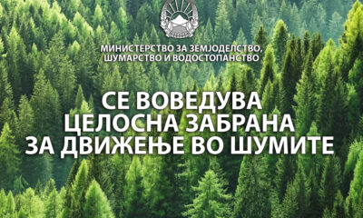 Министерството за земјоделство, шумарство и водостопанство по барање на ЈП „Национални шуми“ даде согласност за воведување целосна забрана за движење во шумите и на шумското земјиште....