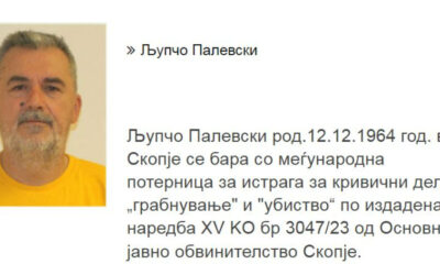 Љупчо Палевски Палчо од вечерва е објавен на веб страницата на МВР дека се бара со потерница. „Љупчо Палевски род.12.12.1964 год. во Скопје се бара со...