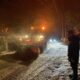 На патот Деве Баир-Крива Паланка, неколку километри пред градот, паднато дрво го препречи коловозот, на кој веќе има натрупано снег. Патници кои на враќање од Бугарија...