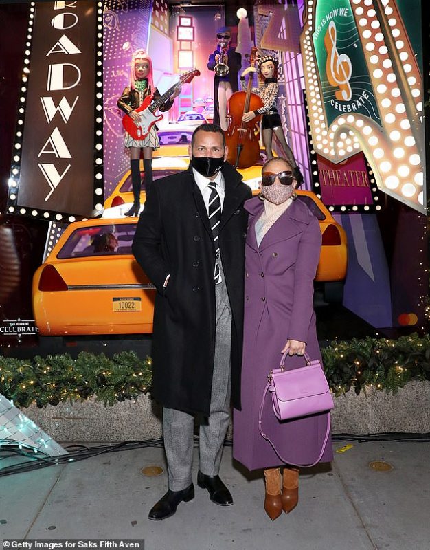 И помалку од 24 часа подоцна, мегаsвездата (51) беше забележана во Њујорк како присуствува на откривањето на празничниот прозорец на зграда на Петтата авенија (Saks Fifth Avenue) – една од најлуксузните згради на Големото јаболко – со својот свршеник Алекс Родригез во Њујорк.