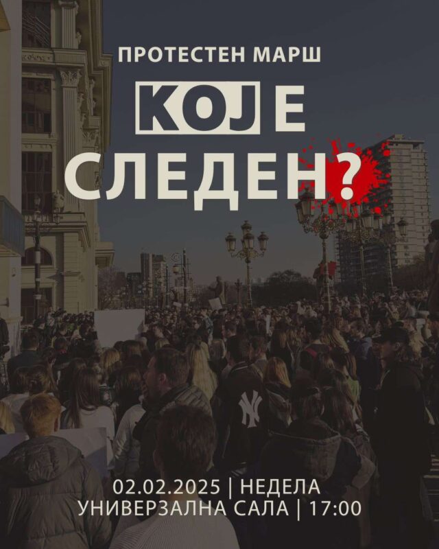 „Ве известуваме дека на ден недела, 02.02.2025, во 17:00 часот ќе се одржи протест на булевар Партизански Одреди, кај Универзална сала. Случајот со Фросина Кулакова не е изолиран, се повторуваат истите случаи на неконтролирано возење со години, се повторува неказнувањето и недолжното згаснување на животи. Фрустрирани од состојбите што не се менуваат, повикуваме на изразување на граѓански револт.