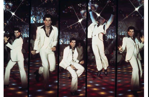 До втората половина на деценијата диското стана мода за задолжително носење. Се разбира, никогаш нема да го заборавиме ликот на Џон Траволта во Saturday Night Fever („Треска во сабота навечер“) во бел триделен костум со широки ревери, висок елек, лелеави панталони и црна кошула со јака. Додајте чевли на платформа и авијатичарски очила и практично сте таму.