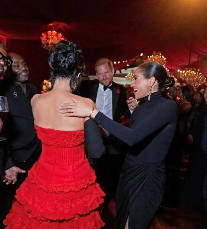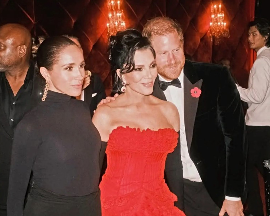 Крис Џенер првично објави серија фотографии од нејзината забава полна со ѕвезди, вклучувајќи ја и една на која позира со војводата и војвотката од Сасекс, но таа фотографија сега исчезна.