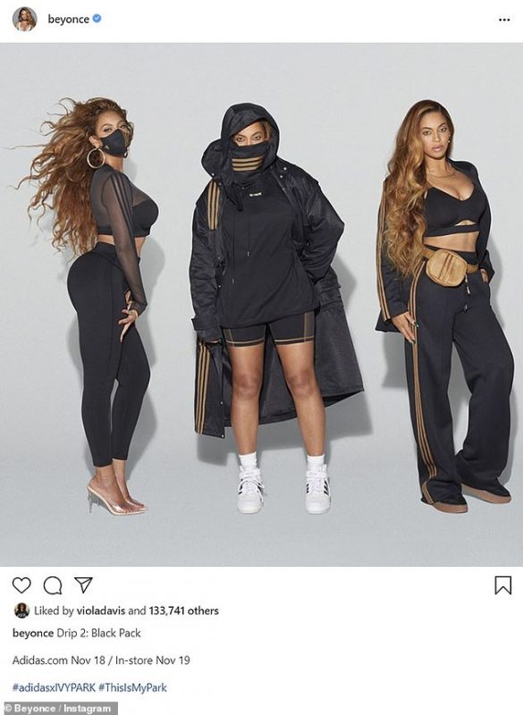А во вторникот Бијонсе покажа поинаква страна на нејзината соработка со спортскиот бренд „Адидас“ позирајќи во елегантен сет од претежно црни парчиња.