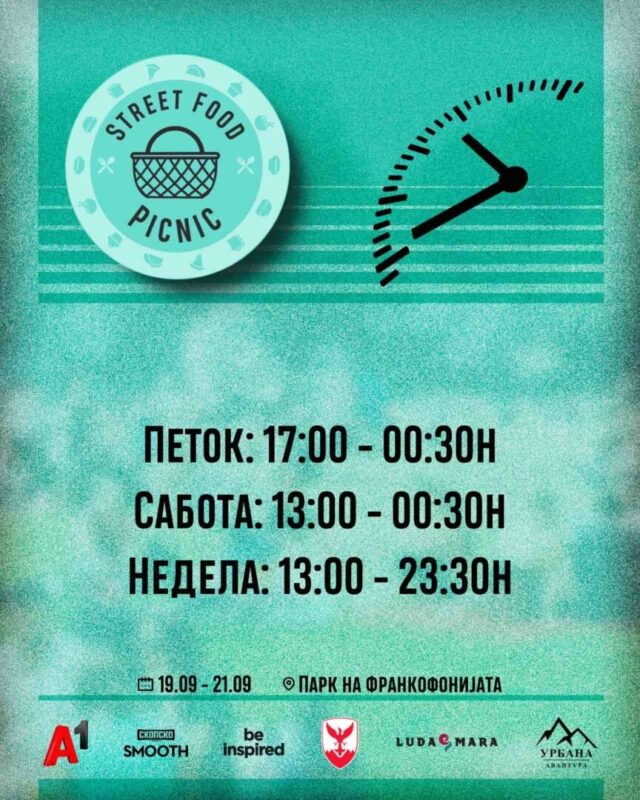 Општина Центар информира дека од 19 до 21 септември во Паркот на Франкофонија ќе се одржи првото издание на Street Food Picnic под отворено небо.