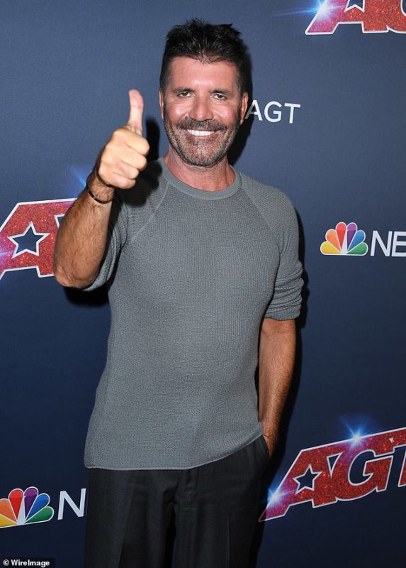 Британскиот музички продуцент Симон Ковел се појави на црвениот килим по повод четвртфиналето на популарното шоу „Америка има талент“ и ја покажа својата нова линија.